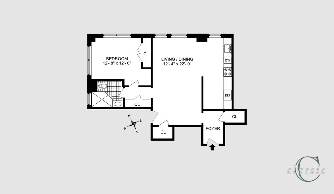 The gracious entry foyer has a large coat closet and leads into the living with high ceilings and Carnegie Hall views. The bedroom with both north and west exposures brings lots of natural light and some park views. The windowed kitchen has brand new appliances and ample cabinet storage. Additional closets are found right outside the new windowed bath for even more storage.
