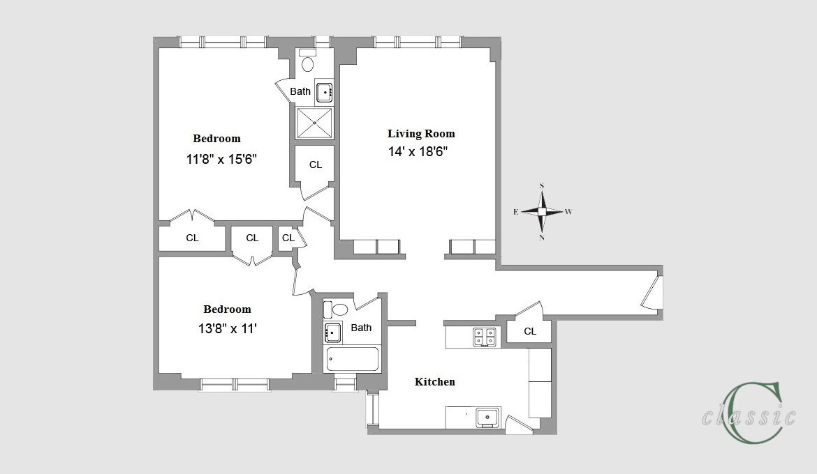 Newly available with no board approval, a Sponsor Pre-war 2 Bedroom 2 Bath in a prime upper east side location! 245 East 72nd Street is a beautiful 1930 Emery Roth prewar building. 12C is a spacious high floor 2bedroom 2 bathroom filled with sunlight. Enter 12C to find a gracious foyer where you follow an elegant archway on the right into the bright wide south facing living room. To the left you will find the windowed eat in kitchen with space for a breakfast nook. There are 2 windowed bathrooms, the primary is en-suite, the second is in the hallway, convenient for guests or the second bedroom. The 2 large bedrooms have excellent closet space. The sun filled primary bedroom faces south. There are through the wall air conditioners and Citi-windows already installed! You will find high ceilings throughout and a lovely prewar flow that is unique to every Emery Roth residence. 12C is being sold as is so bring your vision and create your dream upper east side home!