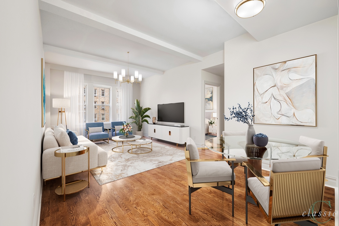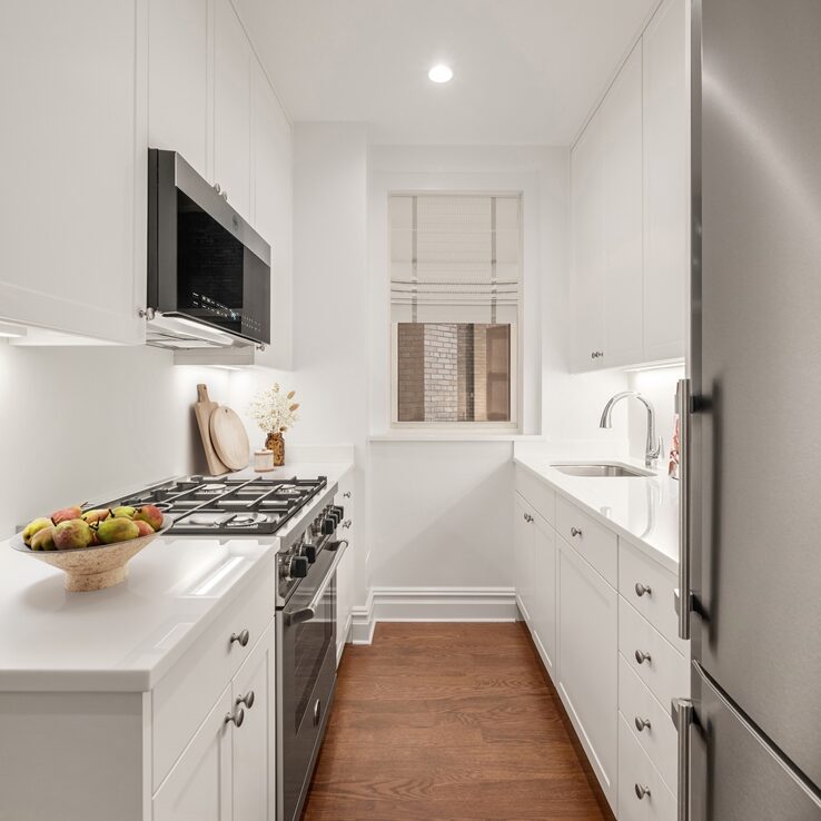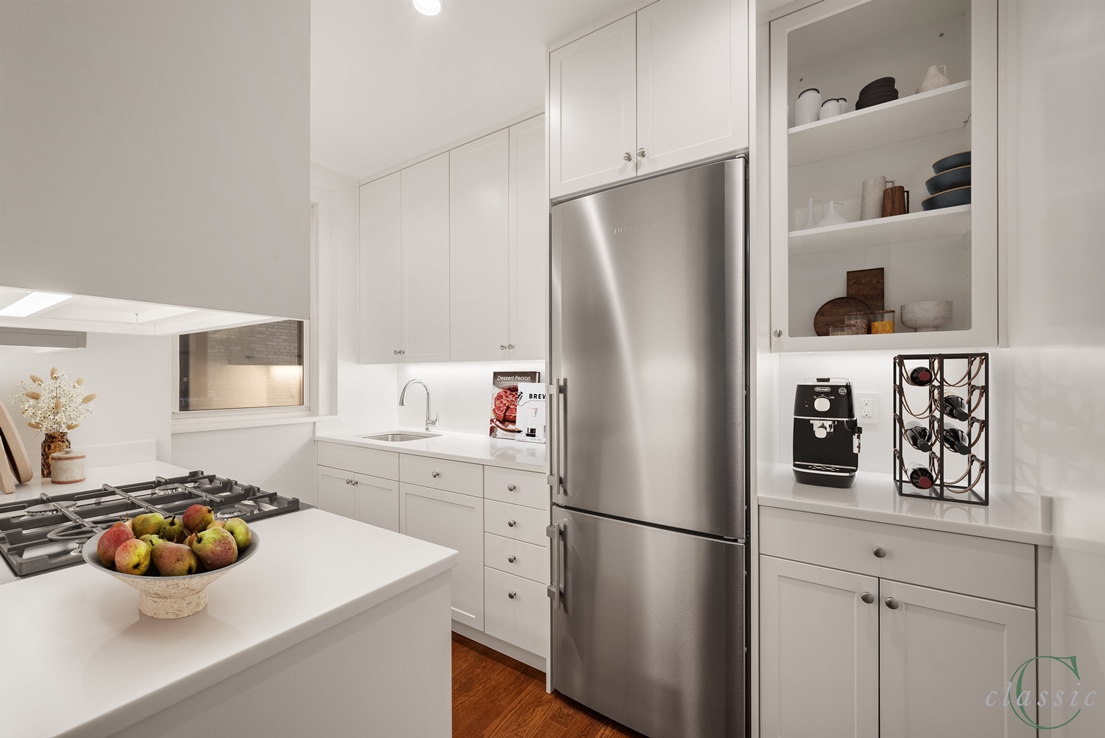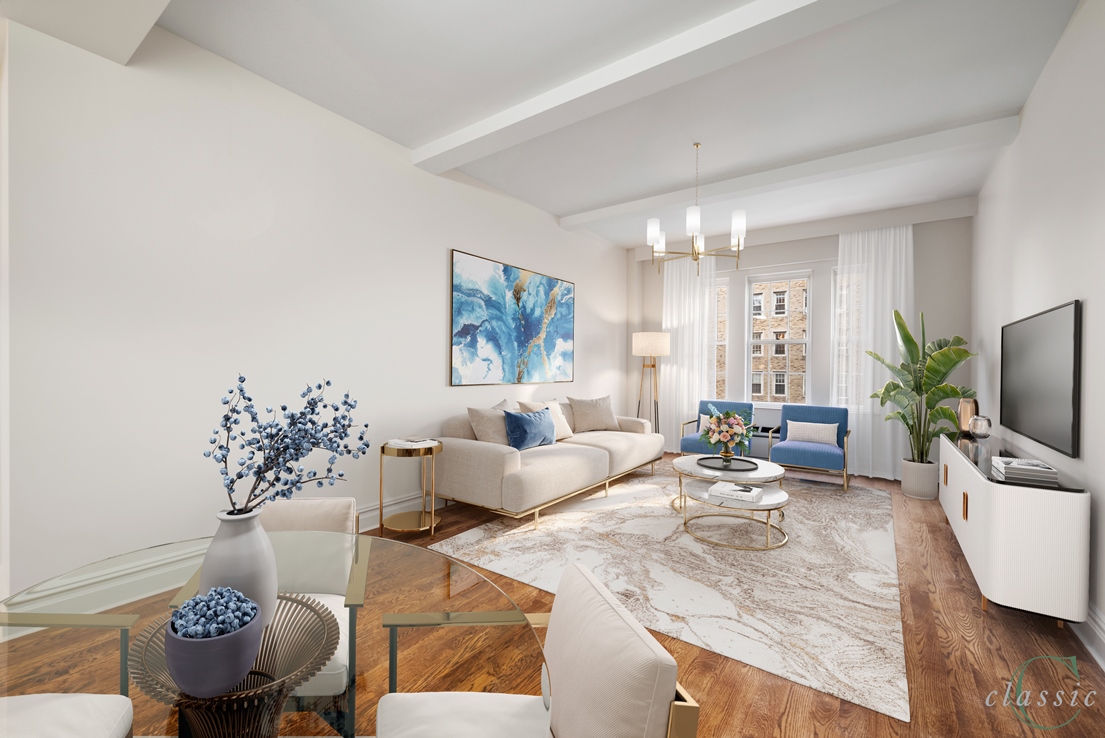 New Sponsor Offering! No board approval! Now available at 25 Fifth Avenue, an elegant prewar condominium, 5B is a superb newly renovated 2 Bedroom 2 Bath Residence being sold with no board approval! Enter 5B to find a gracious entry leading to a large living room with Fifth Avenue views. There are 2 bedrooms with excellent closet space, one with an en-suite bath and one bathroom in the hallway that can serve a bedroom or your guests. The bathrooms are finished in marble with lovely detail. The kitchen has been completely redone and fitted with all new appliances by Liebherr, Bosch & Bertazzoni with new cabinetry throughout. The apartment includes a washer dryer, through the wall air conditioning, hardwood floors, base moldings, high ceilings and so much prewar character. A rare prewar condominium 25 Fifth is a white glove building with 24-hour doorman, fitness center, private garden, storage and a live-in resident manager.